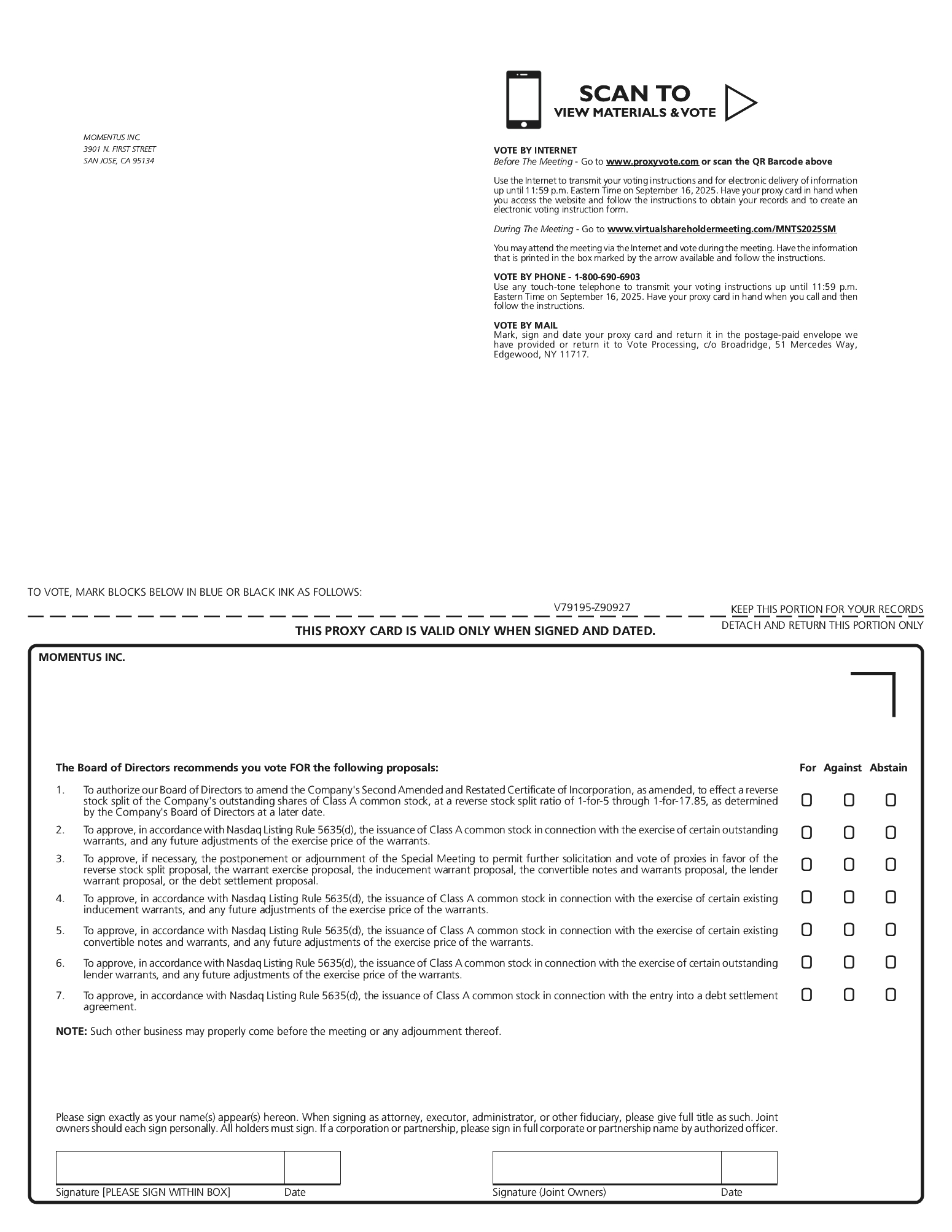 On March 3, 2025, the Board of Directors of the Company had previously offered SIV a reduced conversion price of $2.12 per share of Class A common stock for the Initial Convertible Note. The current conversion price for the Subsequent Convertible Note is $7.4088. On May 16, 2025, the Board of Directors of the Company authorized offering SIV a reduced conversion price of $1.77 per share with respect to 112,576 shares of Class A common stock under the Initial Convertible Note, and thereafter with respect to up to 275,000 shares of Class A common stock under the Subsequent Convertible Note during the period beginning on May 19, 2025 and continuing until June 1, 2025.
